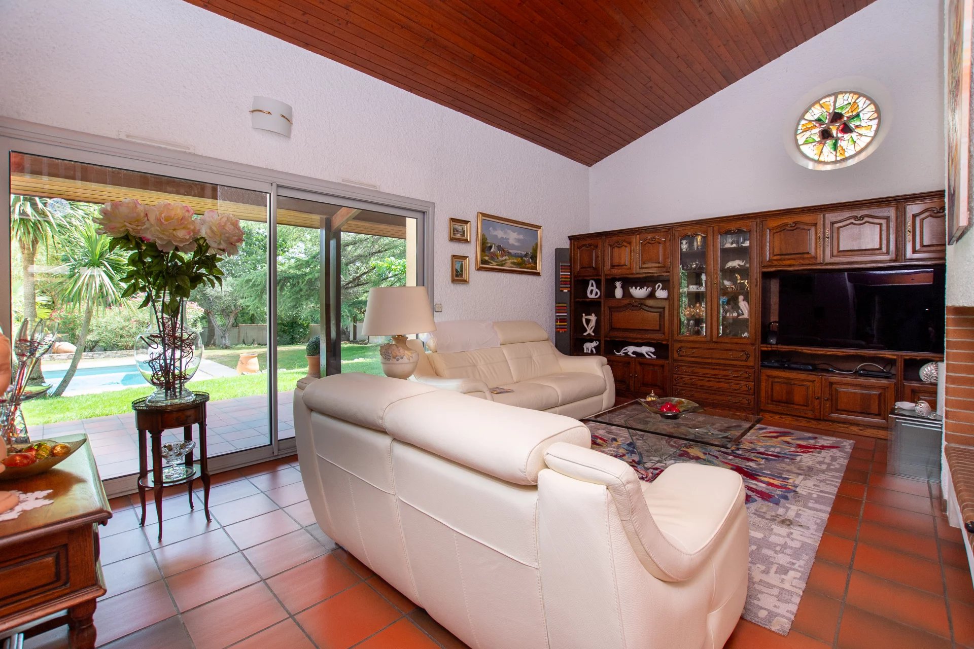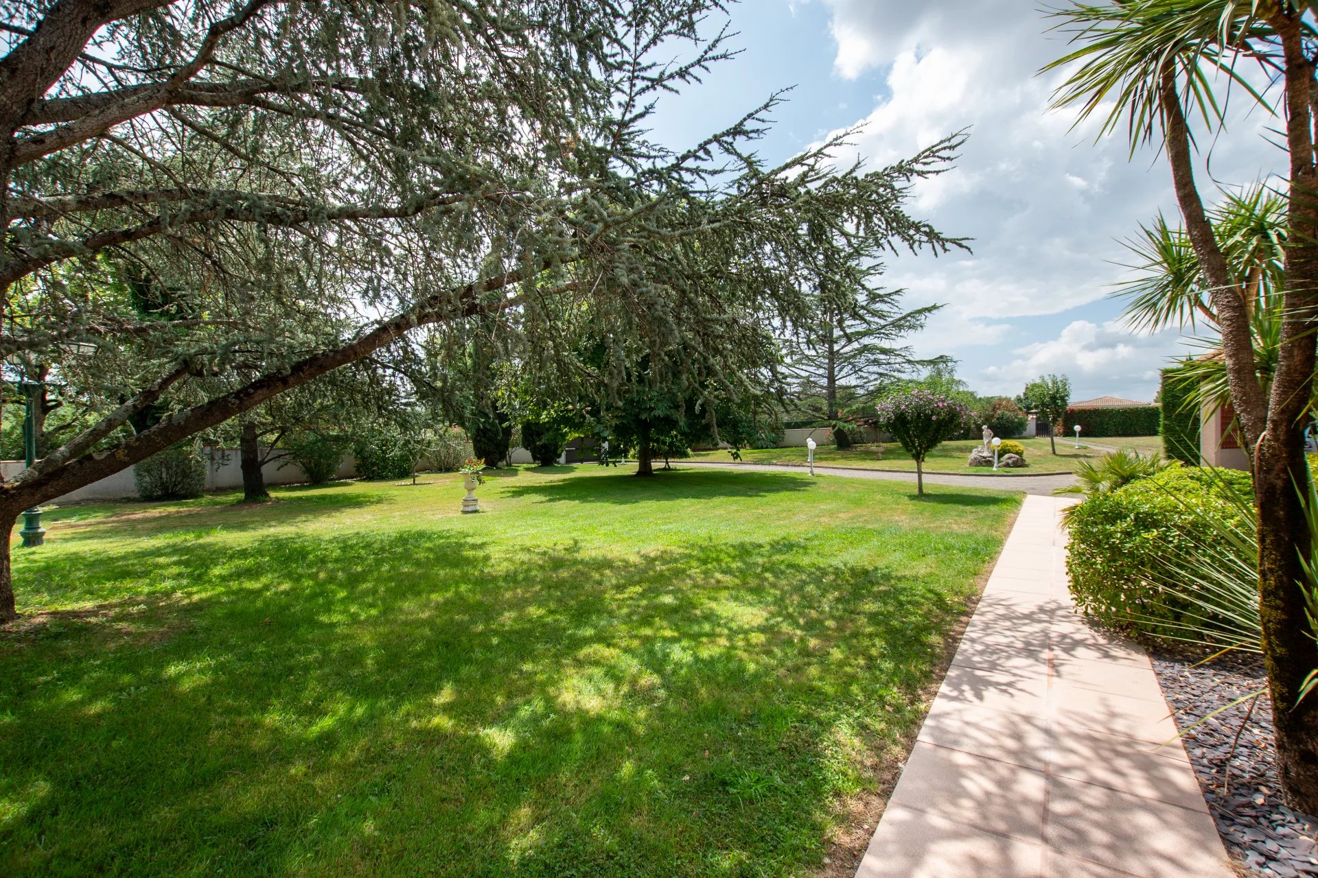 Implantée dans un parc de 5900 m2, beaucoup de charme pour cette maison d’architecte de 190 m2, avec piscine pour parfaire le cadre.