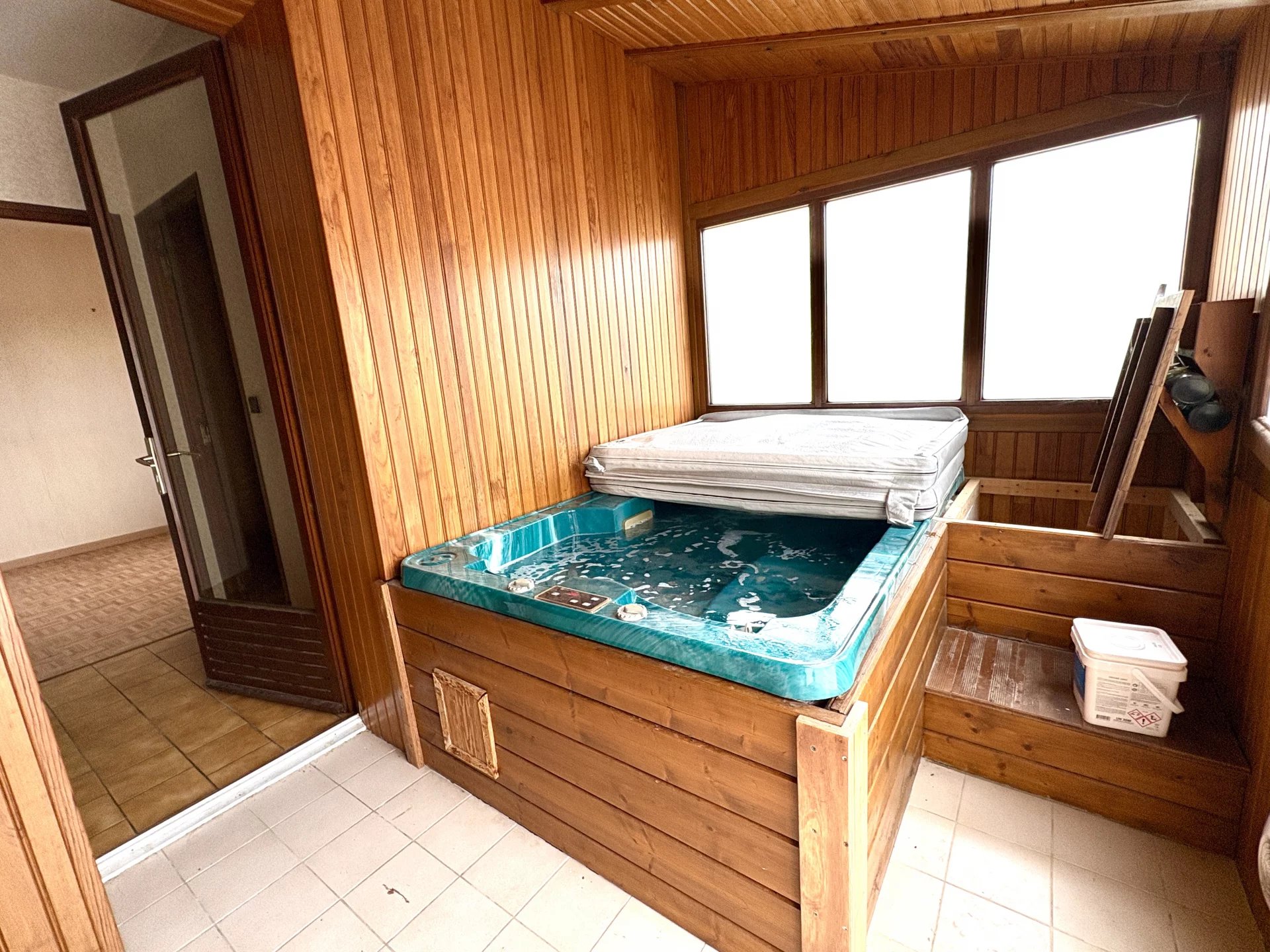 Au RDC, cuisine entièrement équipée ouverte sur le séjour, une grande chambre, buanderie donnant sur l’espace Jacuzzi/Sauna et à l’étage, 3 chambres, une salle de bain, un espace bureau…
