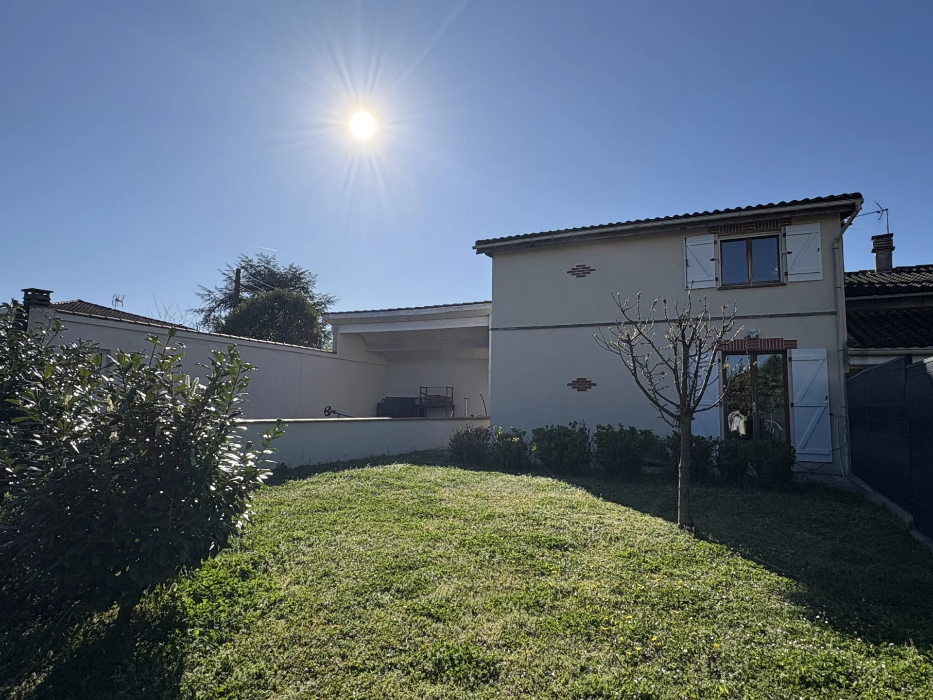 Plaisance-du-Touch, côté Tournefeuille sur une parcelle de 1030 m2 environ, à quelques pas du bus L67 (dir. M° Les Arènes) et face au ramassage scolaire (élémentaire/collège), découvrez cette maison de 153 m2 avec piscine, 100% autonome en énergie électrique. Elle comprend 4 grandes chambres avec placard + 1 bureau ; 2 salles de bains, 2 WC et une buanderie. La cuisine et le salon forment un espace de vie spacieux de 65 m2. À l’extérieur : double garage, piscine 8×4 (liner en béton armé neuf), cuisine d’été, potager avec puits partagé et abri.