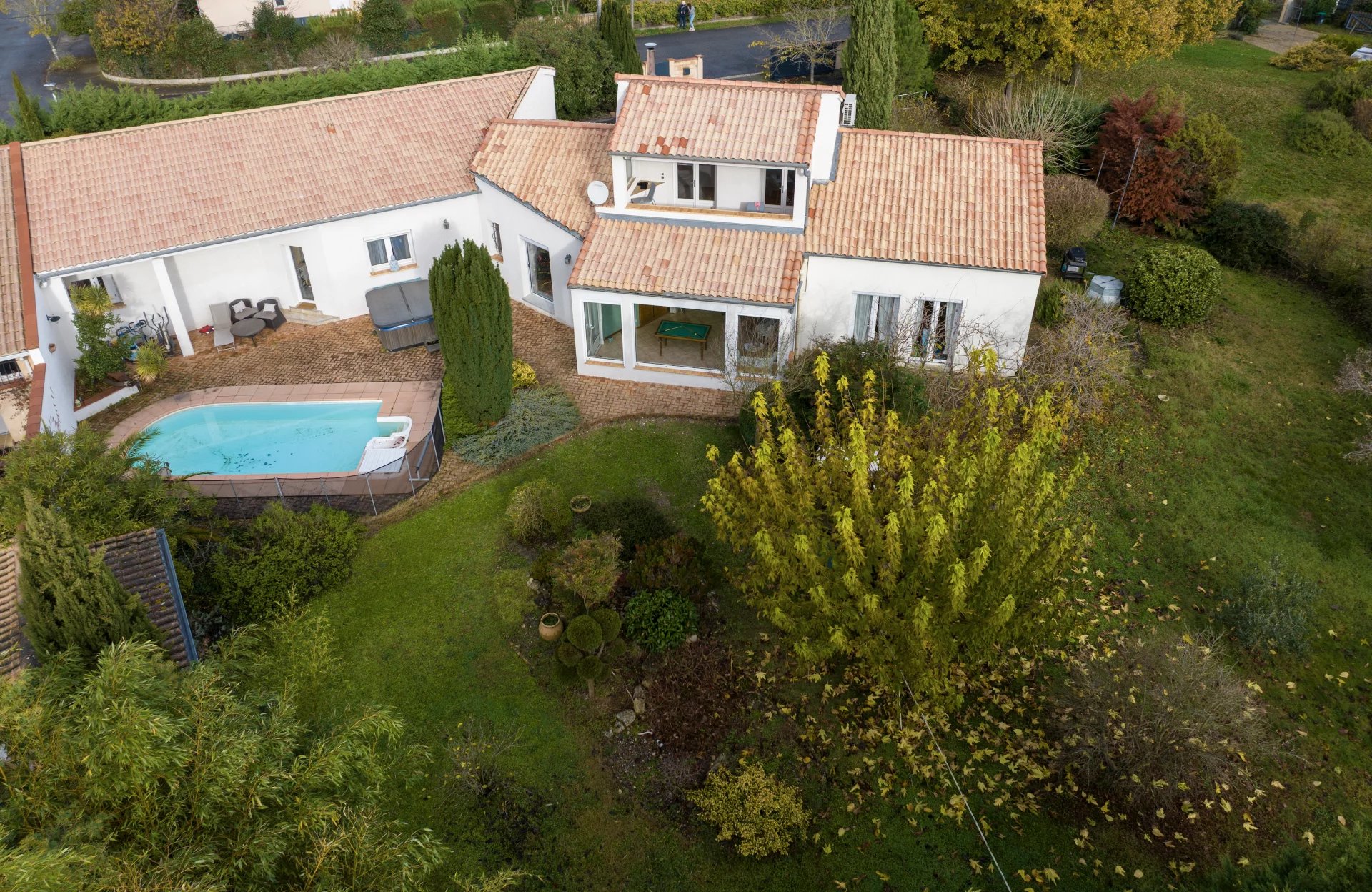 Dans un environnement très calme, à proximité du centre, grande maison de 194 m2 environ, sur un terrain clos et arboré de 1790 m2 avec piscine!