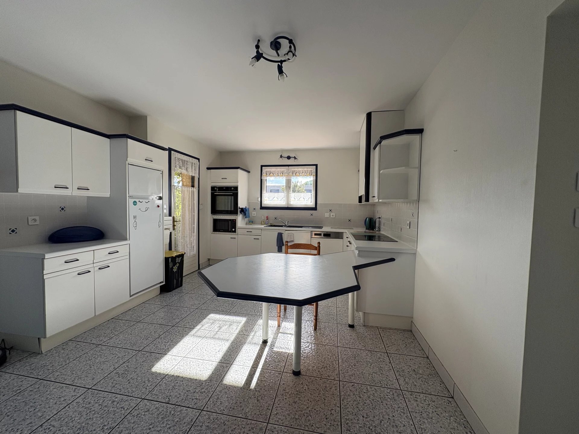 Maison de 1989 d’une superficie de 197 m2, principalement de plain-pied avec une extension à l’étage de 1995 (bureau, chambre, dressing, salle d’eau, wc).